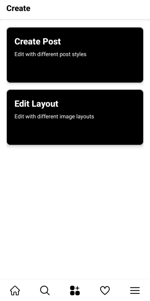 1. Tap on Create icon (3rd icon) at the bottom of your screen and then click on “Create Post”