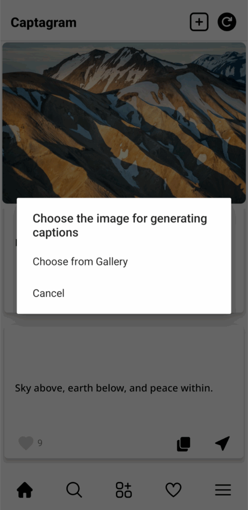 One thing that you cannot find in any other app is the ability to find relevant captions according to your pictures. You just have to upload your favorite picture and there you have it. So many relevant captions to choose from without any hassle! Below are the images how to go about it.